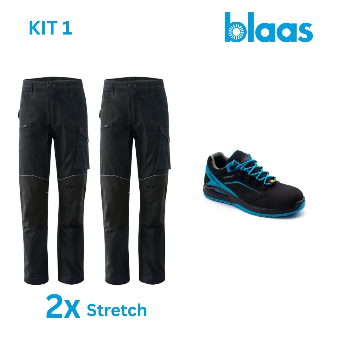 2 paia di pantaloni da lavoro: vestibilità ergonomica e confortevole, ampie tasche multiple, dettagli riflettenti, rinforzi e cuciture rinforzate, 65% poliestere riciclato, 33% cotone, 2% elastan, inserti in Cordura 100% poliestere, peso 270 g/m²